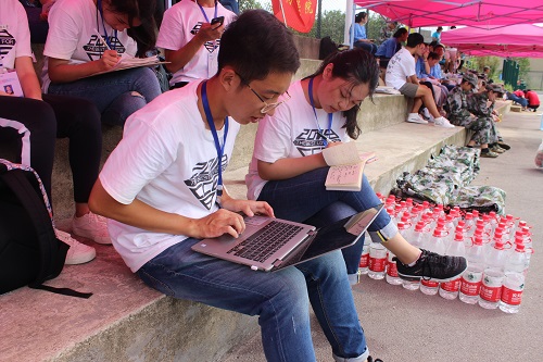 在结束了三天的迎新工作后,班助们来不及休息,就投入到了新生军训的工作中。管理新生、传达通知、收发资料,许多工作都需要班助理快速准确的完成。这几天由于一部分班级助理外出实习,化工院的助理团队愈显忙碌。每天班助理们都要比新生们提前15分钟到达集合场地,组织新生集合完毕后将他们带往军训场,交予教官。新生开始训练后,班助理们在休息处稍事休息,又很快投入工作:分发各类新生需要填写的表格、整理各类资料、为新生军训日记写评语......每一位班助都像小陀螺一样不停地旋转忙碌着。当有新生身体不适,需要下场休息时,班助们就会快速放下手中的事情,上前接下他,并在照顾新生的同时安慰鼓励他。在军训开始的前两天,由于很多同学不适应长沙的天气,出现中暑等情况,班助们更是忙地脚不沾地,有的在休息处照顾新生,有的则负责将情况较为严重的同学送往校医院检查。即使这样忙碌,班助们也都有条不紊地照顾好了每一位同学,完成了每一件工作。