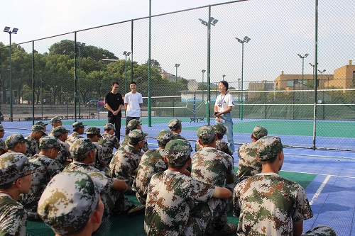 下午则是社团负责人来到军训场,向新生展示他们丰富多彩的课余生活。化工院篮球队、足球队等体育社团,还有辩论队都前来招新。学长学姐们先向新生们介绍了自己社团的团队精神和各类活动,再向同学们展示了自己社团的实力,即在各类比赛中获得的优异成绩,听到学长学姐们的介绍,新生们也对社团活动表现出了极大的兴趣。各个社团招新也各有风格,其中篮球队不仅派出了多名队员,兵分四路向新生们介绍自己的球队,还请来了篮球经理,向女生们抛出橄榄枝,邀请她们成为篮球队的一员。同时,班助们也纷纷向新生们介绍起自己选择社团的理由,并分享了自己社团后的经历和感受,新生们借此也了解了自己班助的另一面。