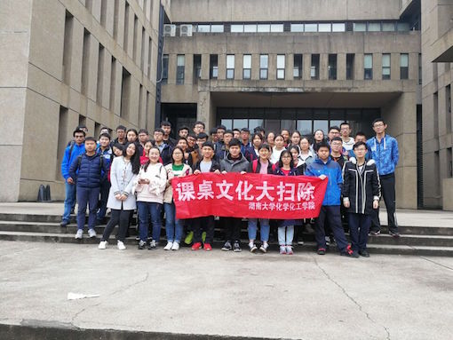 老师和身边同学的支持,相信经过志愿者们的努力和坚持,定能达到优化学习环境、促进校园文明、弘扬奉献精神的目的。同时,希望化工院能够继续发挥学科优势,结合学科特色,投身湖南大学公益事业,将新时代雷锋精神发扬光大!