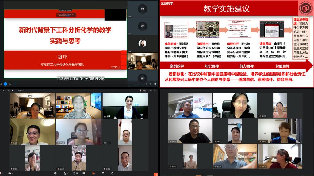 5月26日,分析化学课程虚拟教研室举行了第十四期讲座,由宦双燕教授主持,华东理工大学的胡坪教授为主讲嘉宾,她报告的题目是:新时代背景下工科分析化学的教学实践与思考,六十多位教师参与了线上会议交流。
